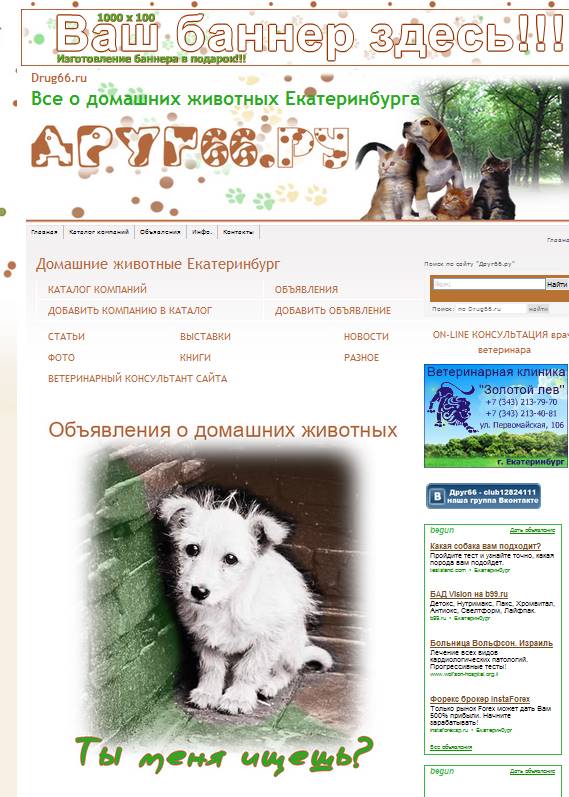 - Повышение рейтинга сайта в поисковой системе YANDEX до 1 страницы 1 места (при введении слов «домашние животные» город Екатеринбург)сейчас 5 место .