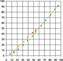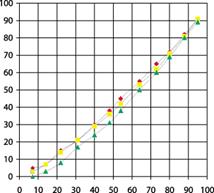 Анализируя градационные кривые при воспроизведении изображения с различной линиатурой, можно отметить, что при увеличении времени экспонирования наблюдаются 1-2% искажения в светах, но во всем остальном диапазоне градаций градационные кривые близки к идеальным. Такие результаты характеризуют пластины Futura Oro как материалы, которые пригодны для воспроизведения оригиналов различного типа с различной линиатурой.