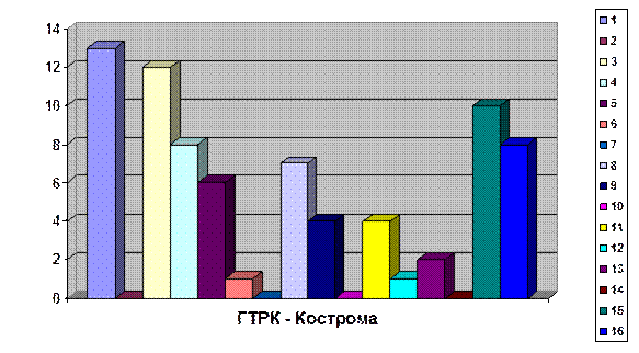 а) недостаток графики (фото, карта, портрет репортера при использовании “хрипушки” и т.п.); ГТРК-Кострома графику использует довольно активно. На «КИТе» в архиве имеется фотография каждого корреспондента на случай включений по телефону.