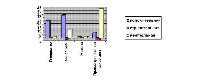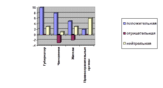 Проанализировав исследование мы выявили, что в группу лидеров на сегодня вошли: глава области, чиновники и представители органов законодательной власти, рядовые жители и представители правоохранительных органов и службы МЧС. Причем, большая часть этих материалов подается с положительной оценкой. Кроме того, в сюжетах журналисты не используют различные токи зрения. Отсюда вывод: журналистские материалы сводятся к односторонним отчетам, а не раскрывают всесторонне тему.
