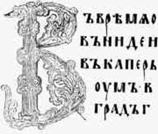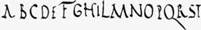 В качестве прописных применялись буквы римского капитального шрифта, сохранившиеся позже в типографских шрифтах "антиква".
