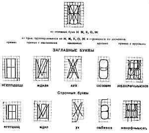 На основании анализа литер мы устанавливаем, что все они в "золотом шрифте" построены не случайно, а закономерно. Эта закономерность может быть выражена определенной конструктивной схемой.