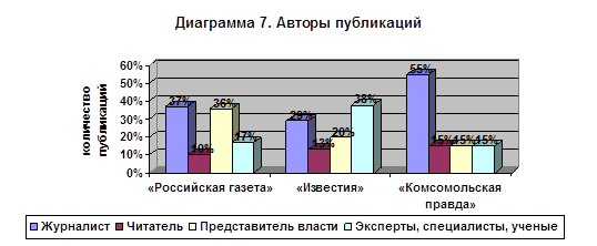 Эмпирическую базу работы составляет анализ ведущих российских периодических изданий. В ходе исследования было проанализировано 5 116 публикаций, из которых 3567 публикации "Российской газеты", 1282 публикации "Известий" и 267 публикаций "Комсомольской правды". Временной охват контент-анализа составляет период с августа 2006 года по май 2007 года.