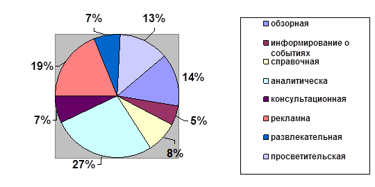 Алексеев выделяет несколько типов социально-информационных функций издания. Применительно к нашему изданию, получаем следующий результат (см. Диаграмму 1.).