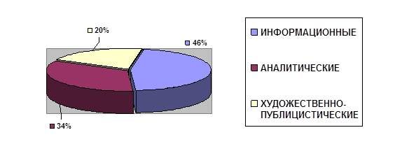 1 полугодие (периодичность – ежедневная): информационные – 46 %, аналитические – 34 %, художественно-публицистические – 20 %;
