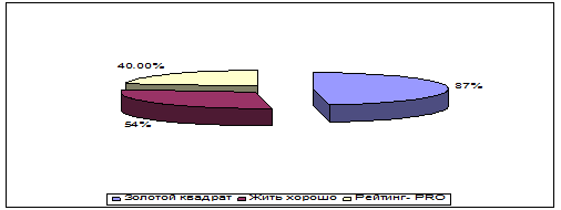 «Рейтинг-PRO»-40%( 6 чел) «Золотой квадрат»-86,6%(13 чел) «Жить хорошо»-53,5%(8 чел) |