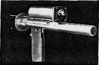 Шпикомер конструкции ВИЖ (рис. 3). Действие прибора основано на различии электропроводимости шпика и мышечной ткани. Для этой цели используют следующие элементы: источник питания, двухэлектродную иглу и микроамперметр, которые связаны в один узел и выполнены в виде пистолета. Прибором улавливают разницу проводимости электрического тока при достижении иглой мышечной ткани. Шпикомеры являются более портативными по сравнению с ультразвуковыми приборами, однако преимущество все же следует отдавать последним, которые дают более высокую точность измерения, а также позволяют измерять не только толщину шпиканой мышечной ткани. Кроме того, при пользовании ультразвуковыми приборами не нарушается целостность кожи и лежащей под ней ткани.