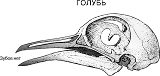 Череп древних амфибий содержал тяжелые покровные пластинки и был похож в этом отношении на типичный череп кистеперых рыб. У современных земноводных как накладные, так и замещающие кости сильно редуцированы. В черепе лягушек и саламандр их меньше, чем у других позвоночных с костным скелетом, причем в последней группе многие элементы остаются хрящевыми. У черепах и крокодилов кости черепа многочисленны и плотно сращены между собой. У ящериц и змей они относительно невелики, причем наружные элементы разделены широкими промежутками, как у лягушек или жаб. У змей правая и левая ветви нижней челюсти весьма свободно соединены между собой и с черепной коробкой эластичными связками, что позволяет этим рептилиям заглатывать относительно крупную добычу. У птиц кости черепа тонкие, но очень твердые; у взрослых особей они срослись настолько полно, что несколько швов исчезли. Очень велики глазничные впадины; крыша относительно огромной мозговой коробки образована тонкими покровными костями; легкие челюсти покрыты роговыми чехлами. У млекопитающих череп тяжелый и включает мощные челюсти с зубами. Остатки хрящевых челюстей переместились в среднее ухо и образовали его косточки – молоточек и наковальню.