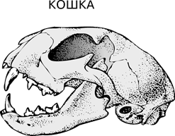 Размеры передней части черепа животных намного превосходят размеры мозговой части; сильно развитые челюсти резко выступают вперед. Такое положение сохраняется вплоть до человекообразных обезьян.