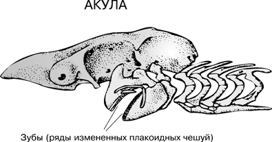 Висцеральные элементы черепа – производные хрящевых жаберных дуг, возникших в стенках глотки при развитии у позвоночных жабр. У рыб две первые дуги видоизменились и превратились в челюстной и подъязычный аппарат. В типичных случаях у них сохраняются еще 5 жаберных дуг, но у некоторых родов их число сократилось. У примитивной современной акулы семижаберника (Heptanchus ) позади челюстной и подъязычной дуг жаберных дуг целых семь. У костных рыб челюстные хрящи облицованы многочисленными покровными костями; последние образуют также жаберные крышки, защищающие нежные жаберные лепестки. В ходе эволюции позвоночных исходные хрящи челюстей неуклонно редуцировались, пока не исчезли полностью. Если у крокодилов остаток первоначального хряща в нижней челюсти облицовывают 5 парных покровных костей, то у млекопитающих из них остается лишь одна – зубная, которая полностью формирует скелет нижней челюсти.