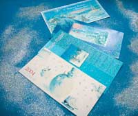 Справедливости ради следует сказать, что использование присыпных блесток - технология очень старая. Еще много лет назад на свежую типографскую краску присыпали порошок золотой или серебряной краски (раньше он продавался в любом хозяйственном магазине, сейчас встречается реже). Эффект вполне удавался: присыпанные участки блестели золотом или серебром. Сейчас, конечно, ассортимент блесток существенно вырос, но технология, как видим, почти не изменилась.