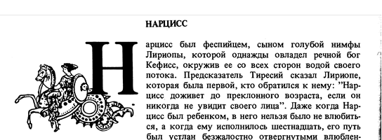 Она применяется для того, чтобы подчеркнуть начало произведения или его части и «настроить» читателя на «нужное» восприятие последующего текста. «Буквица» утоплена в тексте, а её верхняя линия выровнена по верхней линии строки, которую «буквица» начинает. Применение «буквицы» удобно но не экономично, так как требуется сужение формата основного текста.