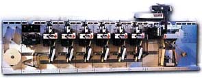 Общий вид восьмикрасочной УФ-флексографской машины FA-3300 фирмы Nilpeter, в которую может быть интегрирована секция трафаретной печати