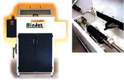 В последние годы повысился интерес, особенно в этикеточном производстве, к специально созданной для этой области полиграфического производства системе чистки углублений загрязненных краской растровых валиков. Требования, которые предъявляют печатники этикеточной продукции к такой системе, определяются весьма четко: такая система должна быть очень компактной, рационально построенной, надежной и удобной в эксплуатации. Такую систему чистки BioJet-LabelBlast предлагает с июля 2003 года в своей программе чистящих средств для полиграфического оборудования фирма Apex Europe - известный изготовитель растровых валиков и гильз для них, клеемазальных и отжимных валиков.