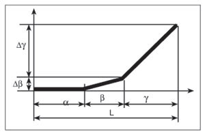 После прохождения точки В лист начинает вести себя иным образом. На приводном валу листовыводного транспортера обычно закрепляются поддерживающие выводимый лист элементы, например, в виде дисков. Радиус поддерживающих дисков (Rпд) меньше радиуса движения стоек захватов каретки (Rст) для того, чтобы не зажать и не повредить лист, находящийся между печатным цилиндром и поддерживающими дисками. Обычно эта разность составляет не менее 2–3 толщин самого толстого листа, который машина может запечатать. С момента передачи листа в захваты каретки листовыводного транспортера передняя кромка листа, удерживаемая захватами каретки, продолжает двигаться со скоростью печатного цилиндра Vпц. Но поскольку натянутый лист прилипает к офсетному цилиндру, его части, следующие за передней кромкой, начинают прижиматься к поддерживающим дискам. Это происходит при движении каретки на угле b — от точки В до точки С — точки выхода каретки на прямолинейный участок.