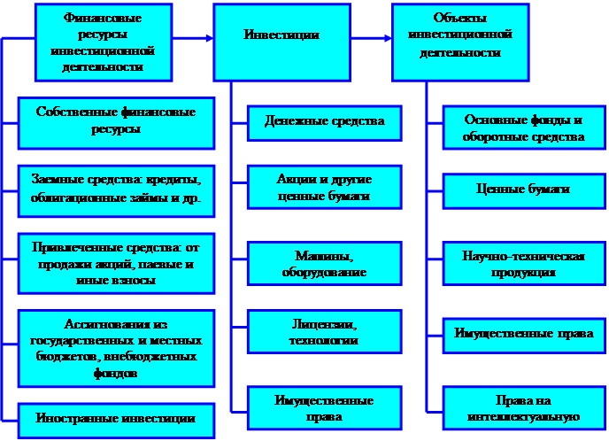 Рис. 1. Финансовые источники, виды и объекты инвестиций.