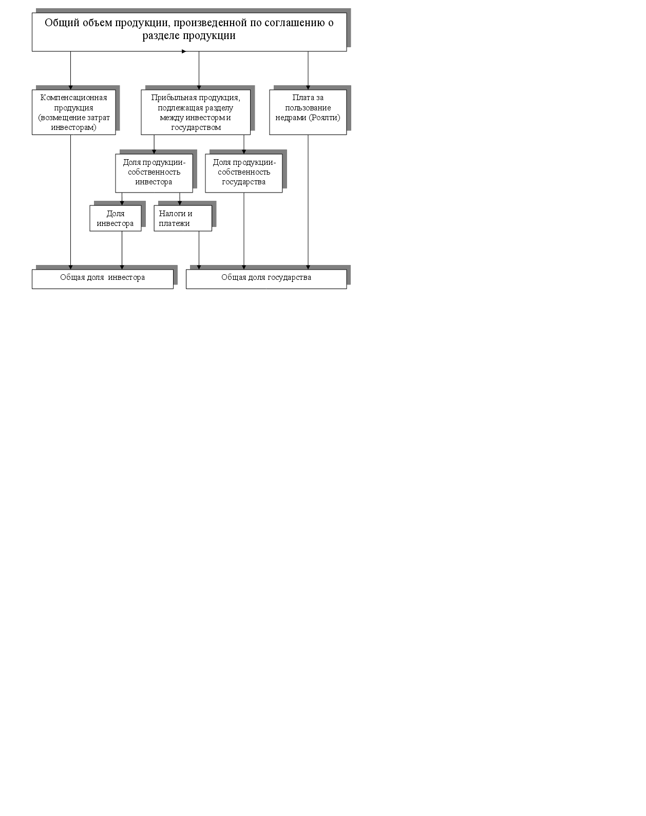 Важной особенностью является максимальное упрощение взаимоотношений инвестора и гос-ва. Прежде всего это относится к взиманию налогов и др. платежей ,взимание кот. полностью заменено разделом прод-ции.