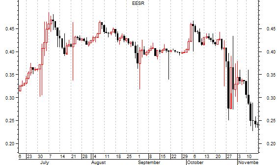 17 октября акции были проданы на основе анализов Japanese Candlesticks Charting и индикатор MACD. Первые уже с 6 октября начали показывать “темное” облако, которое так и не смогло по нормальному выйти из него. Индикатор MACD ясно показывал на сближение 12 и 26 дневных средних скользящих, которые и пересеклись 20 октября. Акции проданы по цене 0,4200 $ за одну на общую сумму 273 000 $.