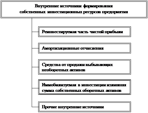 Среди представленных на рисунке видов внутренних источников формирования инвестиционных ресурсов предприятия главенствующая роль принадлежит реинвестируемой части чистой прибыли.