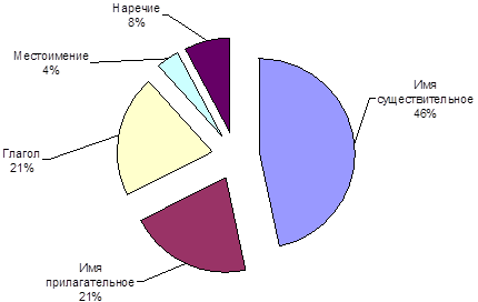 На первом этапе анализа проведено исследование морфологических характеристик используемых слов, как частей речи.