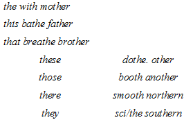 Запропоновані вправи розраховані на учнів початкової школи (перша іноземна мова) та основної школи (друга іноземна мова) для вдосконалення вимови звуків [θ, ð]. Вимова міжзубних англійських приголосних [θ, ð] у цих вправах опрацьовується з опорою на зразок. Більш складним завданням є дотримання правильної вимови звуків у зв'язному продуктивному мовленні, коли форма і зміст поєднуються у висловлюванні. Для цього рівень сформованості артикуляційних навичок повинен бути досить високим, чому в певній мірі сприяють і вправи на корекцію та вдосконалення цих навичок у навчальному процесі.