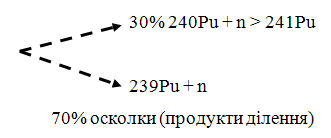 | Pu-239-240 | токсичний метал, трансуранід | b, a, g | тисячі років | Все тіло: скелет, печінка | Печінка, кістки, все тіло (практично не виводиться) |