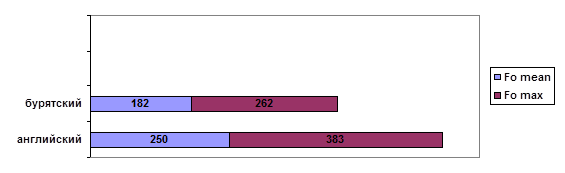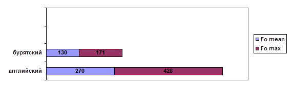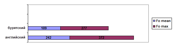 Экспериментальная часть исследования, материалом для которой послужили звучащие тексты, записанные носителями английского и бурятского языков (всего 15 человек), посвящена выявлению и анализу сходств и различий мелодических характеристик английской и бурятской речи.