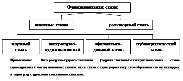 Выделяются разговорный, официально-деловой, научный, публицистический и художественный функциональные стили языка.