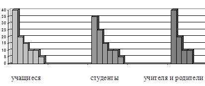 Было проведено анкетирование 120 учащихся разных классов МОУСОШ № 20, 12 студентов (выпускников МОУ СОШ № 20, обучающихся в вузах разных городов Краснодарского края, Москвы и Петербурга), 20 учителей и 20 родителей. Им были предложены следующие вопросы: