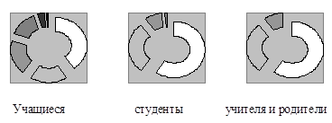 Ответы родителей и учителей: в школе их называли – 1) дети-40%, 2) ребята-40%, 3) пионеры, комсомольцы и октябрята-20%; в учебных заведениях – 4) уважаемые студенты-50%, 5) товарищи студенты-20%, 6) без конкретизации адресата (ВЫ)-30%.