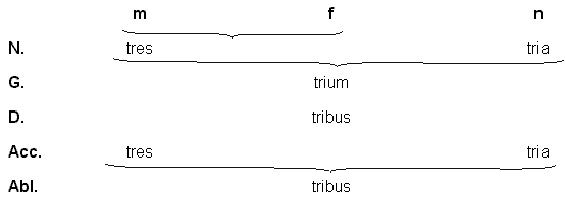 NB: слово tres, tria , названия сотен и слово mille не склоняется в ед. числе.