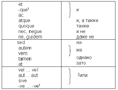 1. Союзы -que и - ve -ve присоединяются ко второму из соединяемых слов в качестве суффикса: dei deaeque боги и богини .