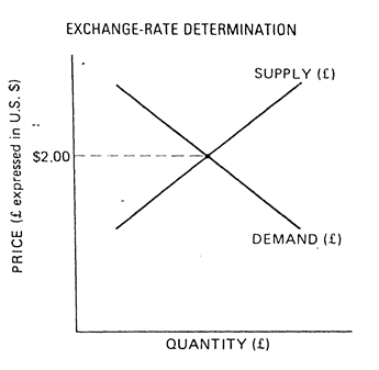 The underlying forces that determine the exchange rate between two currencies are the supply and demand resulting from commercial and financial transactions (including speculation). Foreign-exchange supply and demand schedules relate to the price, or exchange rate. This is illustrated in Figure 1 , which assumes free-market or flexible exchange rates.
