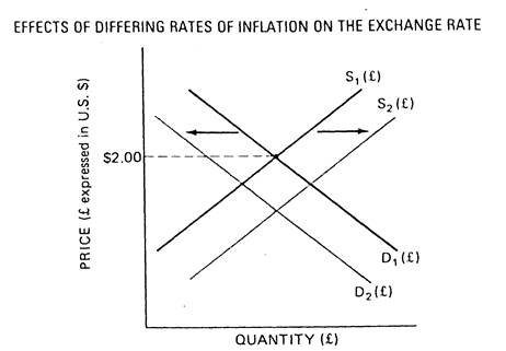 ). In other words, there is an increased demand for U.S. dollars in Britain. The reduced demand for pounds and the increased supply (resulting from British purchases of U.S. goods) mandates a newer, lower, equilibrium exchange rate. Furthermore, as long as the inflation rate in Britain exceeded that in the United States, the British pound would continually depreciate against the U.S. dollar.