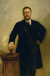 At the invitation of the first family, John Singer Sargent was a White House guest for a week in the middle of February 1903, while he painted a portrait of the President. For Sargent, the foremost Anglo-American portraitist of his era, the experience was vexing in many respects. Particularly, Sargent found the President's strong will daunting from the start. The choice of a suitable place to paint, where the lighting was good, tried Roosevelt's patience. No room on the first floor agreed with the artist. When they began climbing the staircase, Roosevelt told Sargent he did not think the artist knew what he wanted. Sargent replied that he did not think Roosevelt knew what was involved in posing for a portrait. Roosevelt, who had just reached the landing, swung around, placing his hand on the newel and said, "Don't I!" Sargent saw his opportunity and told the President not to move; this would be the pose and the location for the sittings. Still, over the next few days Sargent was frustrated by the President's busy schedule, which limited their sessions to a half-hour after lunch. Sargent would have liked to have had more time. Nevertheless, Roosevelt considered the portrait a complete success. He liked it immensely, and continued to favor it for the rest of his life. Commissioned by the federal government, Sargent's Roosevelt is the official White House portrait of the twenty-sixth President.