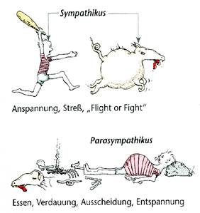 Während bei körperlicher Arbeit der Sympathikuseinfluss auf alle Organe überwiegt, ist die Aufgabe des Parasympathikus die schnelle Wiederauffüllung des Energiedepots und die Einregulierung der Organfunktionen auf die Ausgangsleistung. Deswegen wird der Parasympathikus auch als Erholungsnerv bezeichnet.