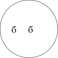 Пусть круг представляет собой совокупность элементов, составляющих культуры. Области, обозначенные литерами а и б, обозначают частные культурные элементы (национальное в культуре), а область аб символизирует общие элементы в двух культурах (интернациональные). Поскольку между языком и культурой имеется параллелизм, следует говорить о национальных и интернациональных элементах не только в культурах а и б, но и в языках А и Б, их обслуживающих.