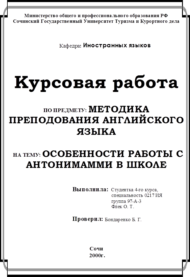 Реферат: ОСОБЕННОСТИ РАБОТЫ С АНТОНИМАММИ В ШКОЛЕ
