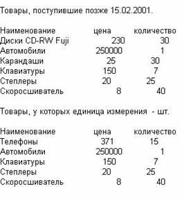 Количество единиц товара. Хранит число единиц товара, находящихся в данный момент на складе. Тип данных – целый (Integer). Ширина поля – 4 символа. Возможные значения ограничены шириной поля.