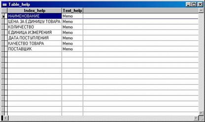 Наименование товара. Служит первичным ключом, по которому можно получить доступ к любой строке таблицы. Тип данных – строковый (Character), длина – 20 символов. Ширина поля – 20 символов. Возможные значения – названия товаров, имеющих отношение к офису.