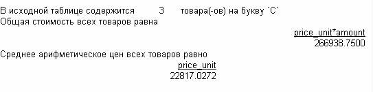 ?'В исходной таблице содержится'+STR(_Count)+' товара(-ов) на букву `С`'
