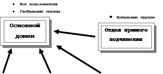 Основным элементом централизованного администрирования в Windows NT Server является домен . Домен - это группа серверов, работающих под управлением Windows NT Server, которая функционирует, как одна система. Все серверы Windows NT в домене используют один и тот же набор учетных карточек пользователя, поэтому достаточно заполнить учетную карточку пользователя только на одном сервере домена, чтобы она распознавалась всеми серверами этого домена.