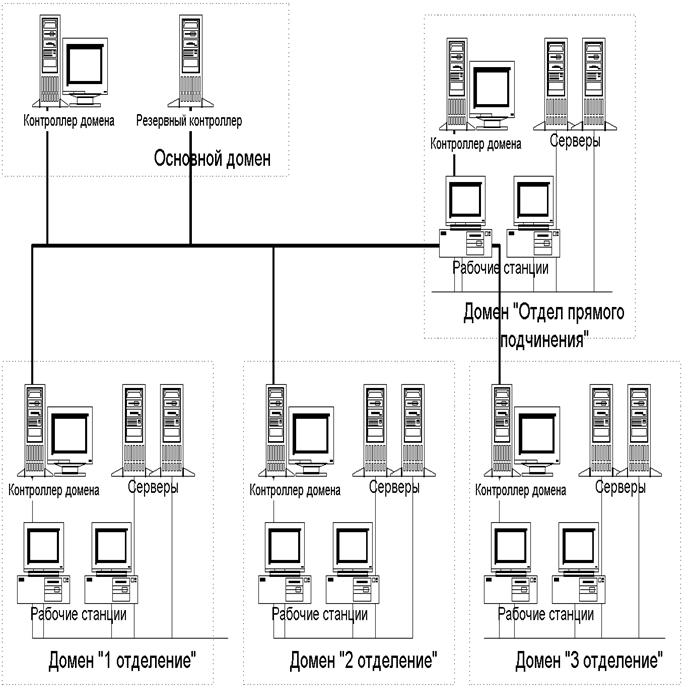 Минимальное требование для домена - один сервер, работающий под управлением Windows NT Server, который служит в качестве первичного контроллера домена