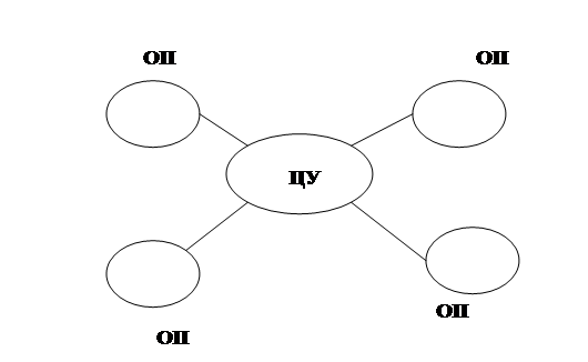 Звездообразная структура чаще всего предполагает нахождение в центральном узле специализированной ЭВМ или концентратора.