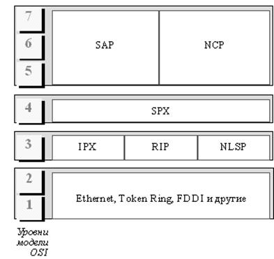 Семейство протоколов фирмы Novell и их соответствие модели ISO/OSI представлено на рис. 7