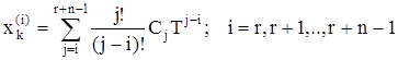 sum_2+=(double)(pow(-1,v)*Factorial(r+n-v-1)/Factorial(i)/Factorial(r+n-i-v-1)/Factorial(v)/pow(Tk,i-v)*Xk[v]);