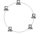 кольцевая (ring) - узлы связаны кольцевой линией передачи данных (к каждому узлу подходят только две линии); данные, проходя по кольцу, поочередно становятся доступными всем узлам сети;