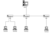 звездная (star) - имеется центральный узел, от которого расходятся линии передачи данных к каждому из остальных узлов;