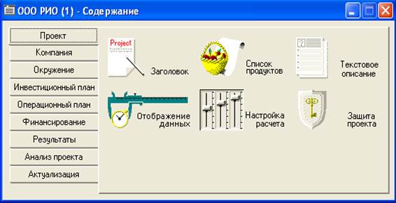 Непосредственно, переходим к главному окну программы, где предоставлены разделы создания бизнес-проекта, как показано на рисунке №1.