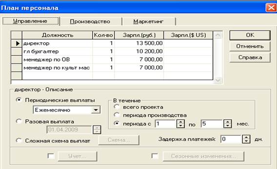 Система позволяет описать график производства и различные виды издержек, связав сложной математической зависимостью выбранные параметры финансовой модели предприятия, например, при моделировании объема производства продукта, исходя из возможностей предприятия и прогнозной емкости рынка. Затраты ООО «Рио» можно проследить на рисунке №4.